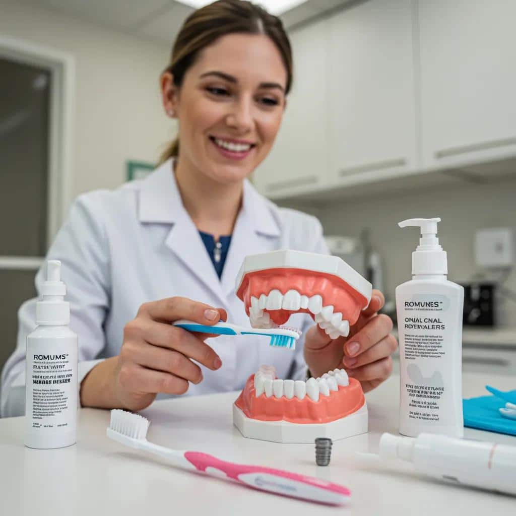 When it comes to your implants, we recommend non-abrasive toothpastes to prevent scratching your crown or abutment surfaces. Alcohol-free antimicrobial mouthwashes can also be helpful, if your dentist suggests them, to reduce bacteria without drying out your gum tissues around the implant. Steer clear of toothpastes with high RDA (Relative Dentin Abrasivity) scores or harsh whitening ingredients, as these can damage your implant’s surface and actually make it easier for plaque to stick. While rinses with chlorhexidine are sometimes used, they’re typically for short-term use under professional guidance due to potential staining and changes to your mouth‘s natural bacteria. Alcohol-free options with ingredients like cetylpyridinium chloride or essential oils might be good for daily support. Always choose products labeled ‘non-abrasive’ or designed for sensitive/restorative care, and chat with your dental professional for personalized advice. Remember, these products are meant to *support* your mechanical cleaning, not replace it. Next, we’ll dive deeper into how water flossers and interdental brushes specifically boost your implant hygiene.